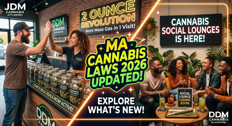 At DDM Cannabis, we are committed to being more than just a dispensary—we are your trusted cannabis partner. Serving our communities in Blackstone and welcoming our neighbors from across the Rhode Island border, we offer a truly unparalleled recreational experience. Whether you’re exploring cannabis for the first time or are a seasoned connoisseur, our budtenders are here to provide honest, compassionate guidance. Our extensive menu is carefully curated to serve every need and budget, from high-quality, affordable options to exclusive top-shelf products. With our easy online ordering, you can browse our full selection and have your items ready when you arrive.